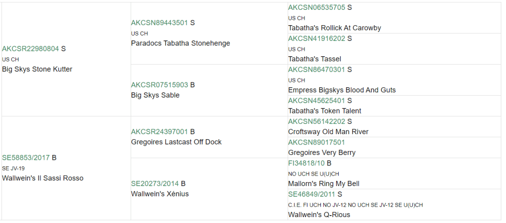 Efter/Sire: US Ch Big Skys Stone Kutter